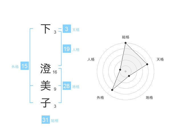 下 澄美子さんの総格は31画の5点!