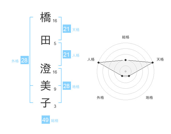 橋田 澄美子さんの人格は21画の5点!