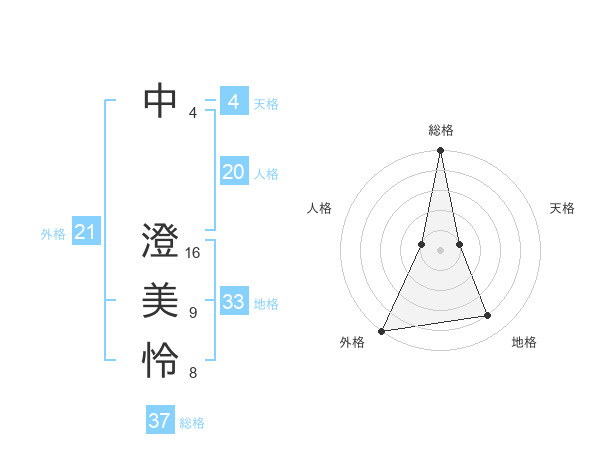 中 澄美怜さんの外格は21画の5点!