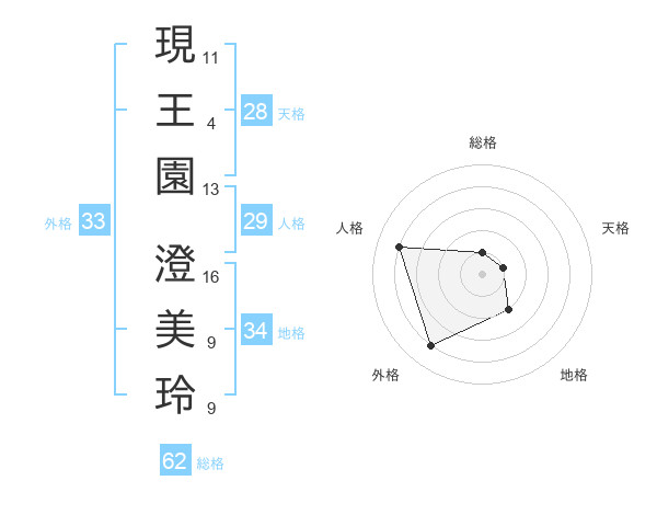 現王園 澄美玲さんを姓名の画数から五運を鑑定