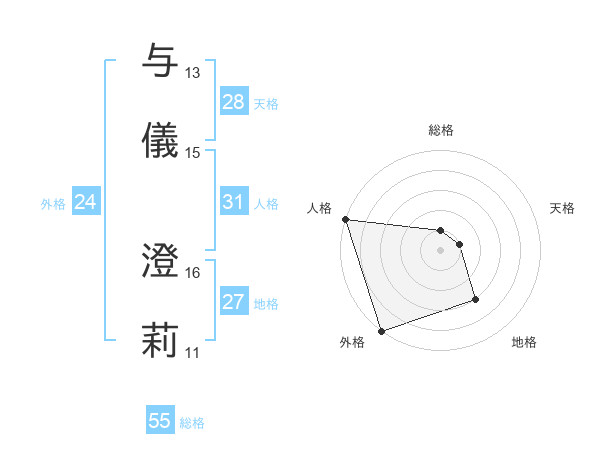 与儀 澄莉さんを姓名の画数から五運を鑑定