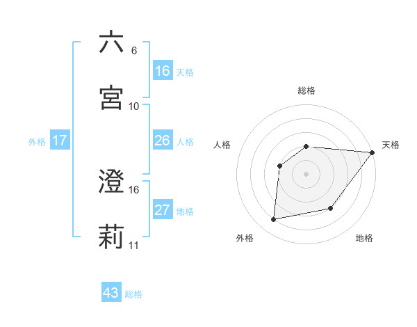 六宮 澄莉さんの天格は16画の5点!