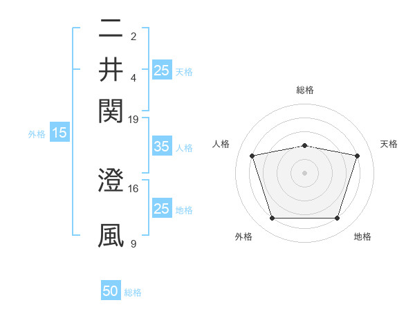 二井関 澄風さんを姓名の画数から五運を鑑定