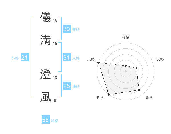 儀満 澄風さんを姓名の画数から五運を鑑定
