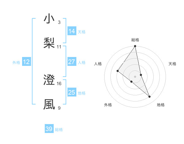 小梨 澄風さんを姓名の画数から五運を鑑定
