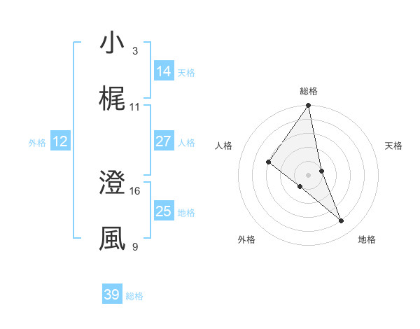 小梶 澄風さんの総格は39画の5点!