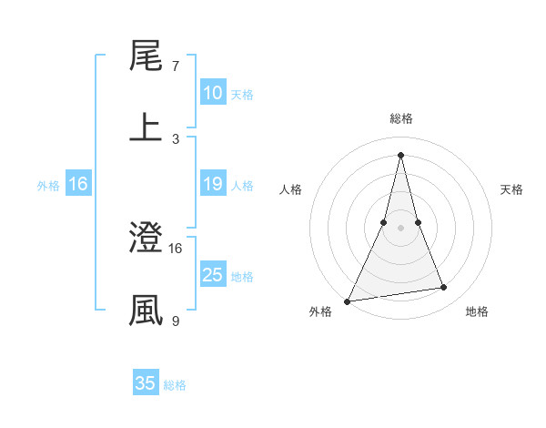 尾上 澄風さんの総格は35画の4点!