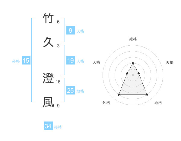 竹久 澄風さんを姓名の画数から五運を鑑定