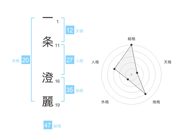 一条 澄麗さんの総格は47画の5点!