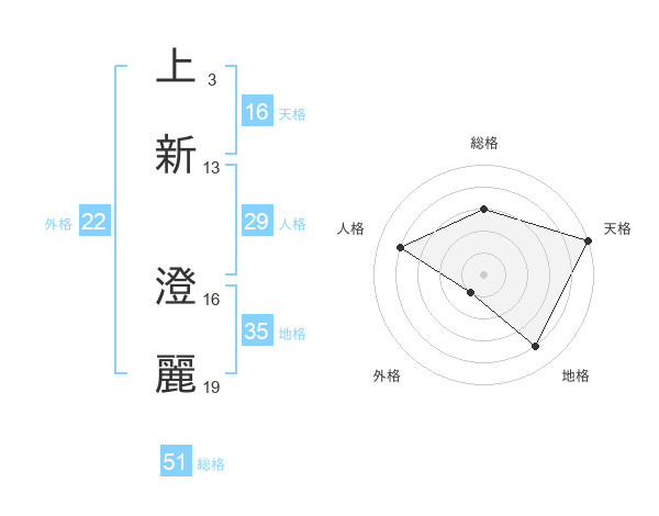 上新 澄麗さんの総格は51画の3点!