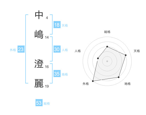 中嶋 澄麗さんの総格は53画の3点!