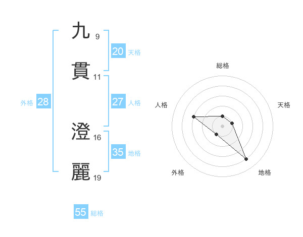 九貫 澄麗さんの天格は20画の1点!