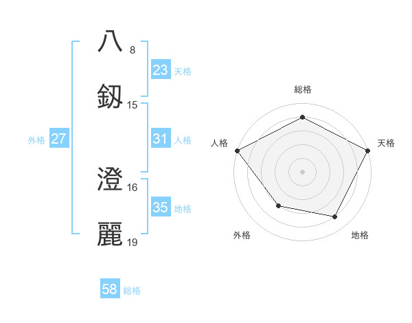 八釼 澄麗さんの天格は23画の5点!