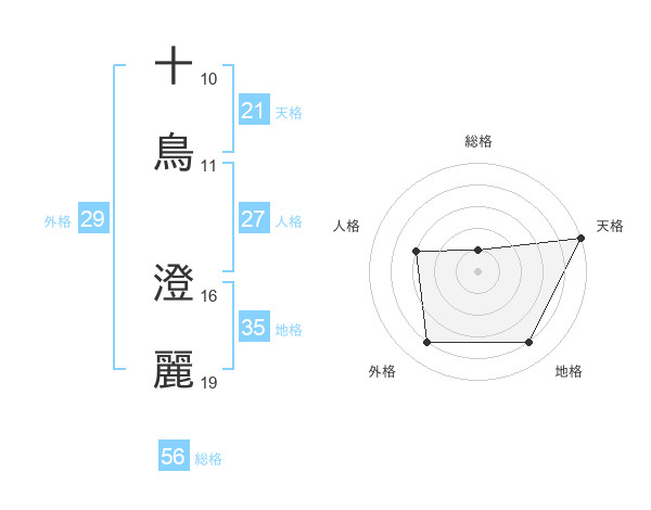 十鳥 澄麗さんを姓名の画数から五運を鑑定