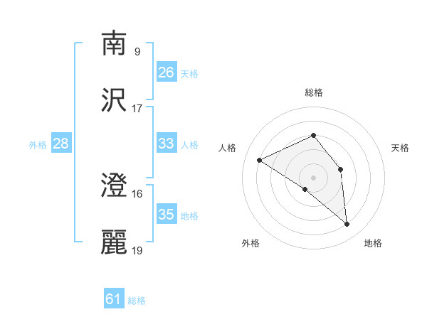 南沢 澄麗さんの総格は61画の3点!