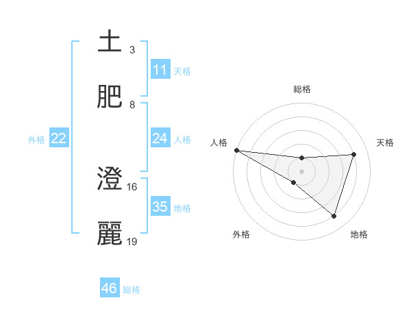 土肥 澄麗さんを姓名の画数から五運を鑑定