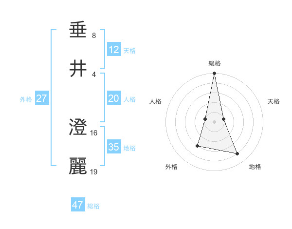 垂井 澄麗さんを姓名の画数から五運を鑑定