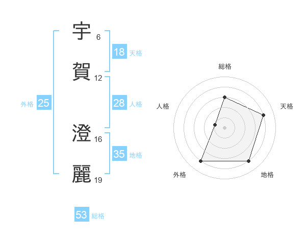 宇賀 澄麗さんの総格は53画の3点!