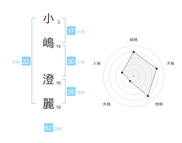 小嶋 澄麗さんの総格は52画の4点!