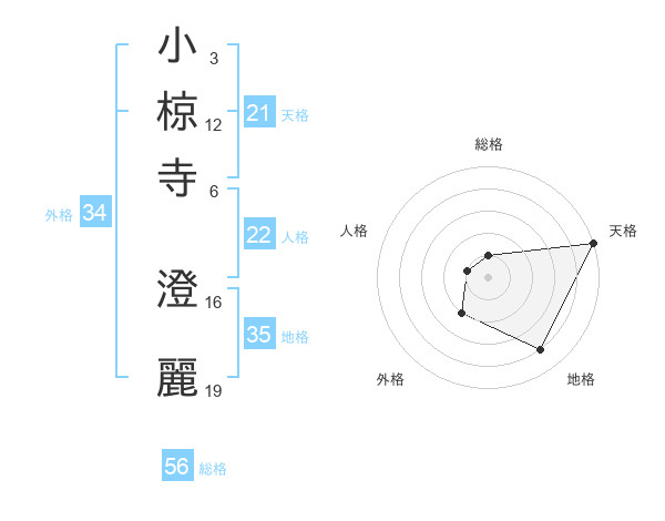 小椋寺 澄麗さんの天格は21画の5点!