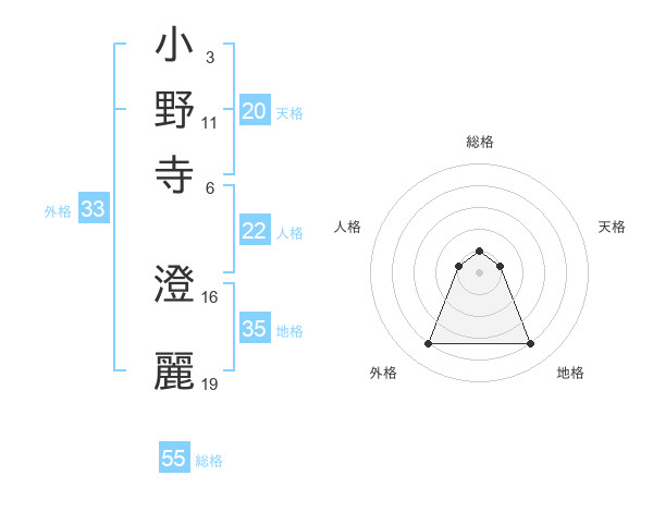 小野寺 澄麗さんの総格は55画の1点!