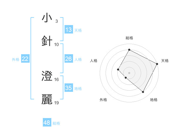 小針 澄麗さんを姓名の画数から五運を鑑定