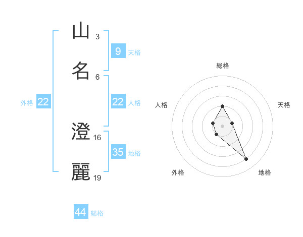 山名 澄麗さんの総格は44画の2点!