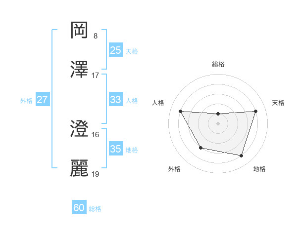 岡澤 澄麗さんを姓名の画数から五運を鑑定