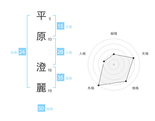 平原 澄麗さんを姓名の画数から五運を鑑定