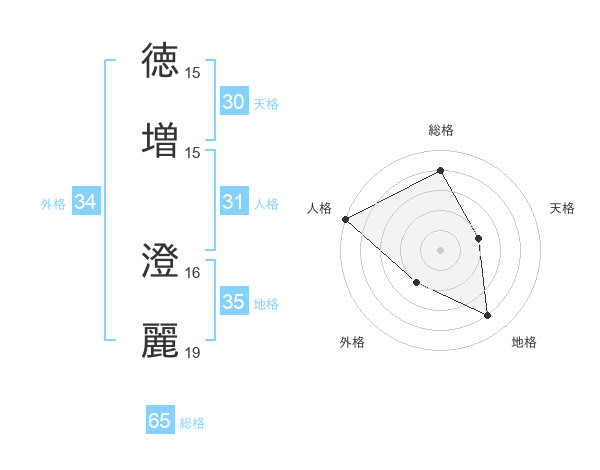徳増 澄麗さんの総格は65画の4点!