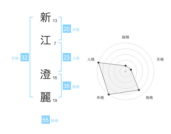 新江 澄麗さんの天格は20画の1点!