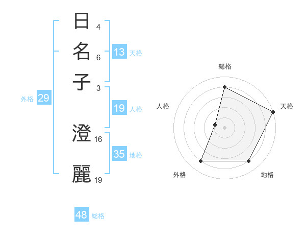 日名子 澄麗さんの総格は48画の4点!