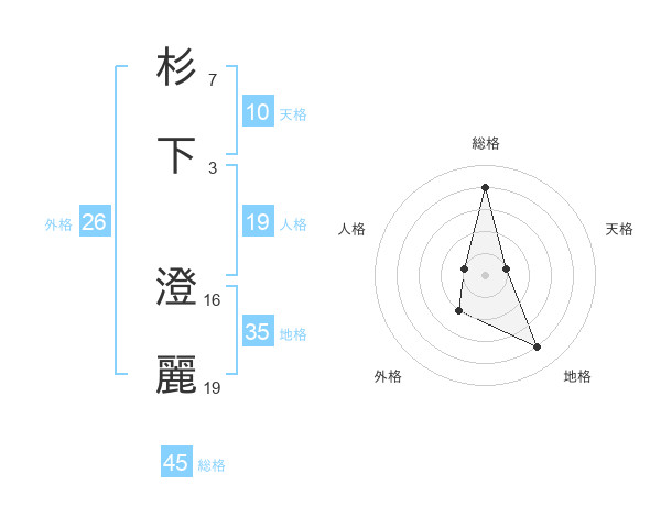 杉下 澄麗さんの総格は45画の4点!
