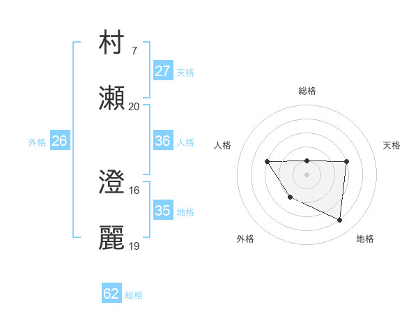 村瀬 澄麗さんを姓名の画数から五運を鑑定
