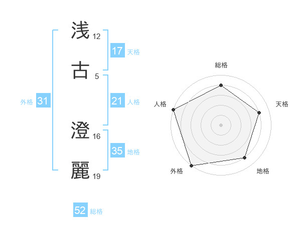 浅古 澄麗さんを姓名の画数から五運を鑑定