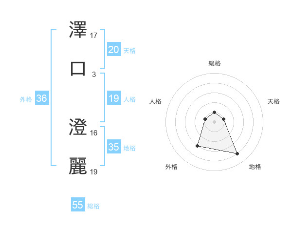 澤口 澄麗さんの天格は20画の1点!
