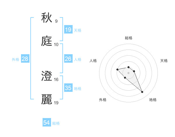 秋庭 澄麗さんを姓名の画数から五運を鑑定