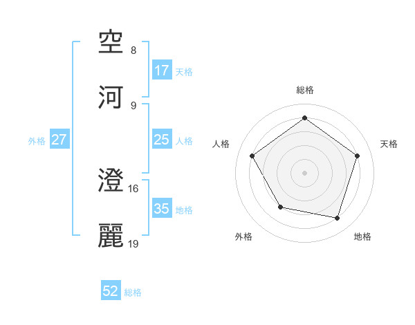 空河 澄麗さんの総格は52画の4点!
