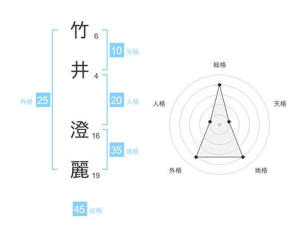 竹井 澄麗さんの総格は45画の4点!
