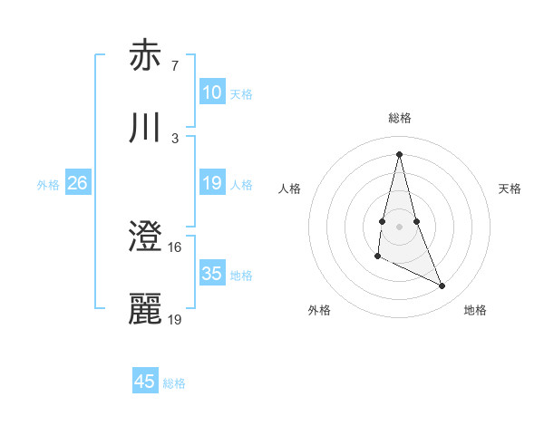赤川 澄麗さんの総格は45画の4点!