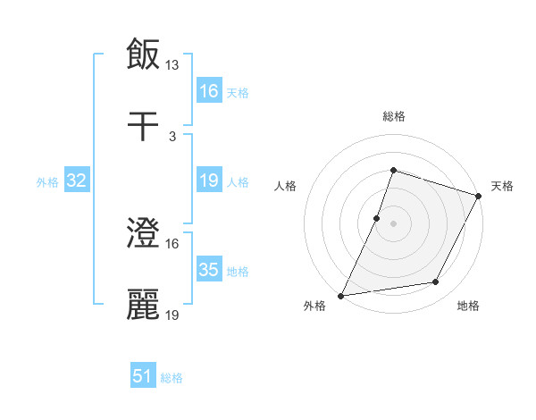 飯干 澄麗さんの総格は51画の3点!