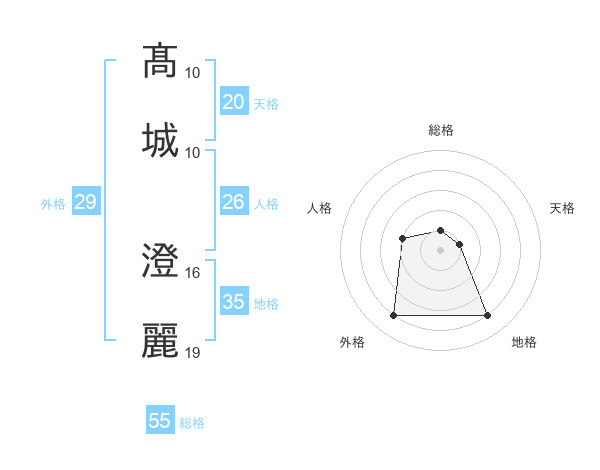 髙城 澄麗さんの総格は55画の1点!