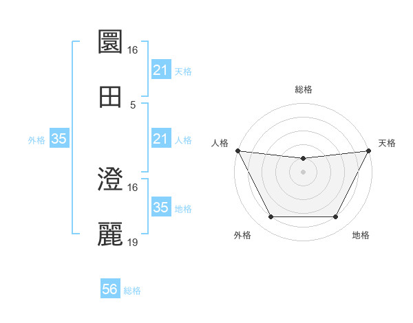 圜田 澄麗さんの人格は21画の5点!