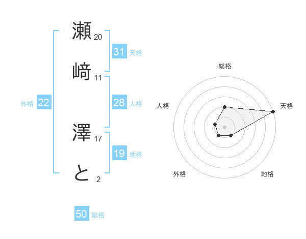 瀬﨑 澤とさんを姓名の画数から五運を鑑定
