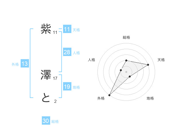 紫 澤とさんの外格は13画の5点!