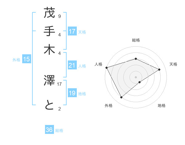 茂手木 澤とさんを姓名の画数から五運を鑑定