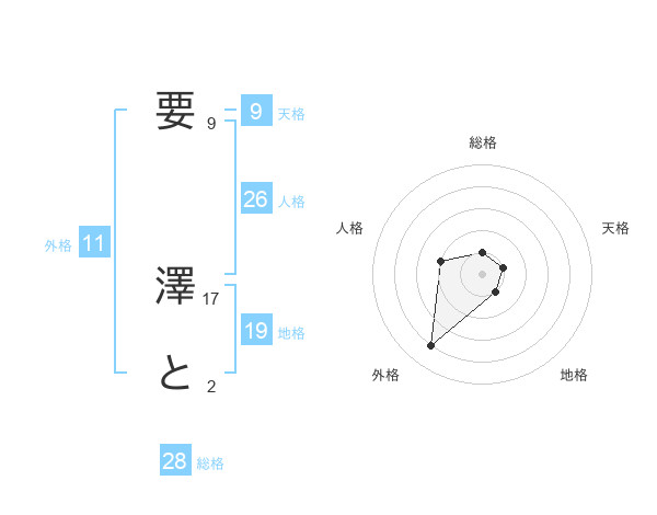 要 澤とさんの総格は28画の1点!