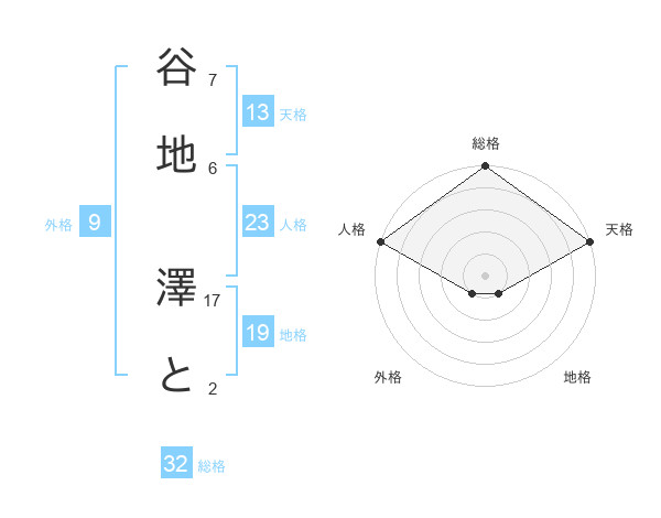 谷地 澤とさんの総格は32画の5点!