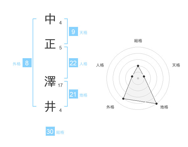 中正 澤井さんの総格は30画の2点!
