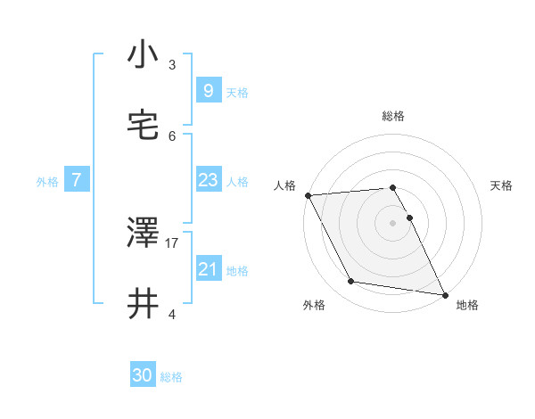 小宅 澤井さんを姓名の画数から五運を鑑定